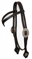 EE Tack - Kopfstück - Harness - Round End's - Silver Pipe's / Rawhide - V Stirnband