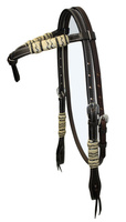 EE Tack - Kopfstück - Harness - Round End's - Silver Pipe's / Rawhide - V Stirnband