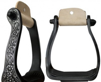 "EE Tack" Steigbügel Alu- SCHWARZ - graviert / gebogen - gepolsterter Tritt